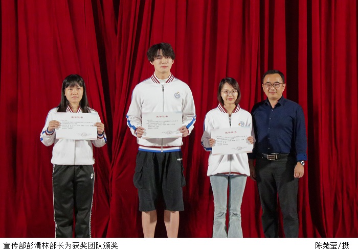 颁奖典礼上,党委副书记张宗珊、学生处处长谭蒙革、党委宣传部部长彭清林、党委组织部部长廖振宇分别为获奖团队颁奖。