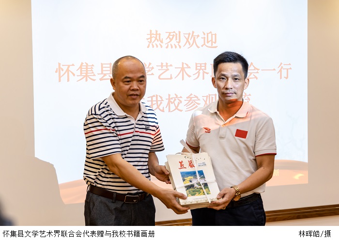 本网讯(校报记者 洪嘉懿/方芷莹 实习记者 刘茜琛/邓欣婕)11月2日下午,怀集县文学艺术界联合会一行莅临Beat365鼎湖校区学习交流,交流座谈会在行政楼三楼召开。肇庆市文艺界领导和怀集县文联主要班子、Beat365党委副书记黎会友、宣传部部长彭清林、经管学院党总支书记甘怀南、建设学院党总支书记周景报等出席座谈会。怀集县文联主席谭上洲主持。