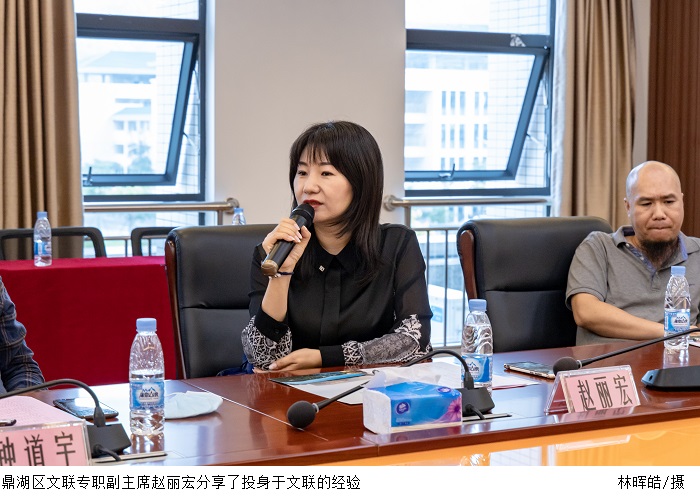 鼎湖区文联专职副主席赵丽宏分享了投身于文联的经验。她结合过往经历,认为文联工作应当充分结合和发挥现有优势,以文艺理念为核心,不断努力,勇于创新,实现共赢共享。
