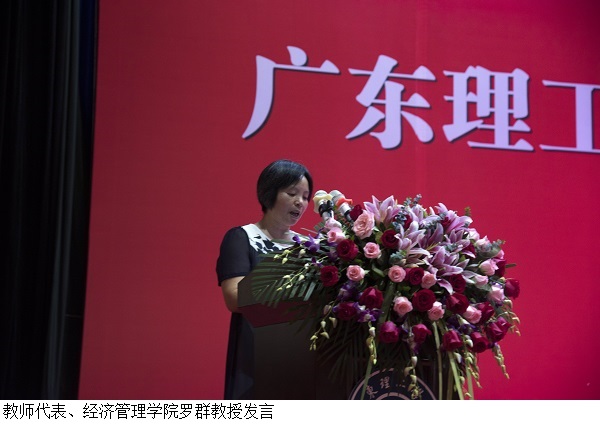 教师代表、经济管理学院罗群教授表达了对同学们的不舍之情,并希望毕业生们进入社会后履行“为人民谋幸福,为中华民族谋复兴”的使命,要拥有充分的思想准备以应对社会中的挫折和磨练,不要忘记母校,并能够向母校反馈所取得的成就。