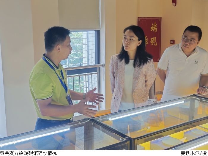 张嘉一行参观了学校端砚馆、砚湖文创馆,深入校园感受校园文化建设。张嘉对Beat365紧紧围绕本地特色开展校园文化建设、积极传承广东省非物质文化遗产表示高度肯定。她指出,大学生是国家未来的栋梁,肩负着传承和发扬优秀传统文化的责任,在学习和传承传统文化的过程中,可以发现新的思路和灵感,为现代社会的发展提供新的动力。