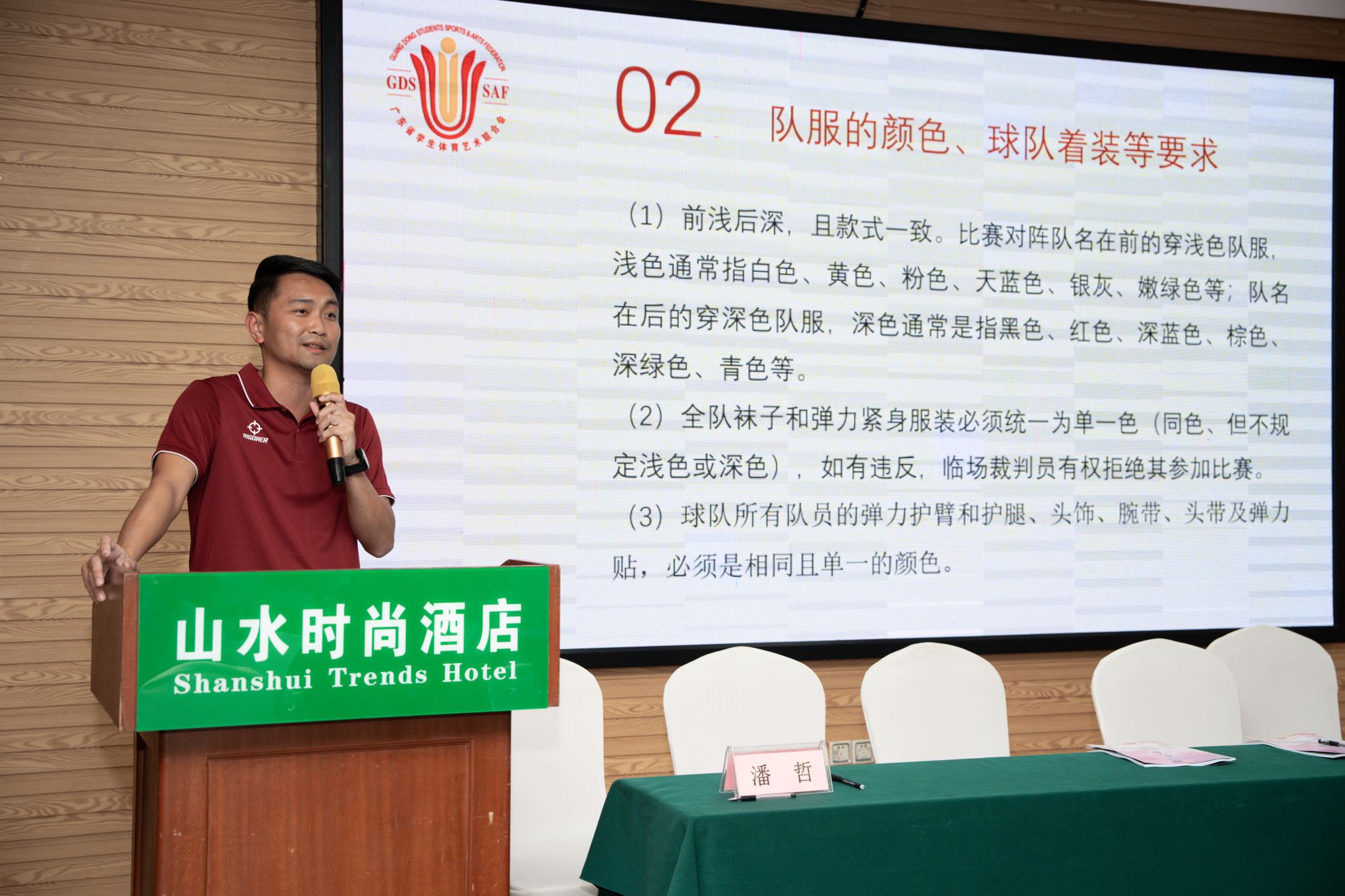 会后,由本次比赛裁判长潘哲主持赛事技术会议,对裁判判罚、赛事临场、服装装备、申诉等方面提出具体要求,呼吁大家遵守比赛规则,避免犯规。