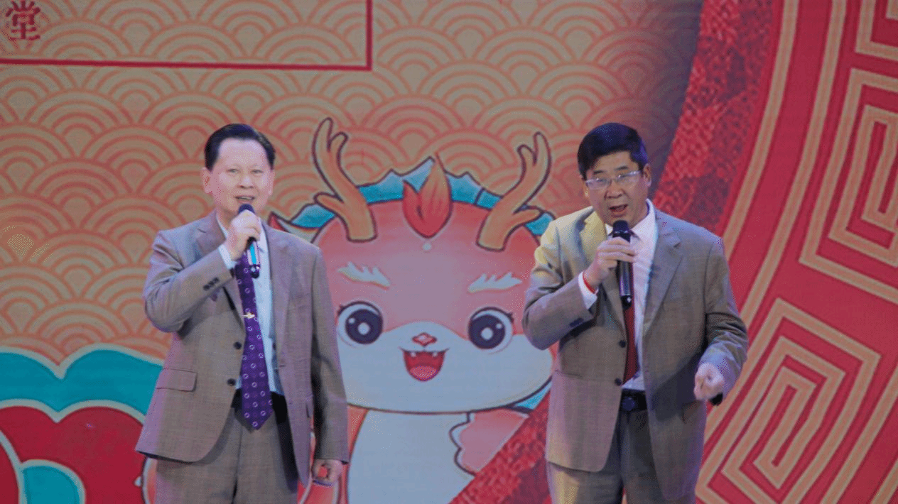 中国科培集团董事长叶念乔先生亲临现场,向全体教职员工表达新年祝福,并与学校党委书记张东生合唱了一首《爱拼才会赢》,表达了对学校高质量发展充满信心,勉励大家努力拼搏、继续奋斗、共创美好未来!