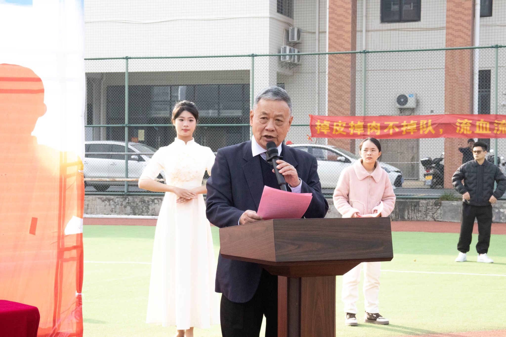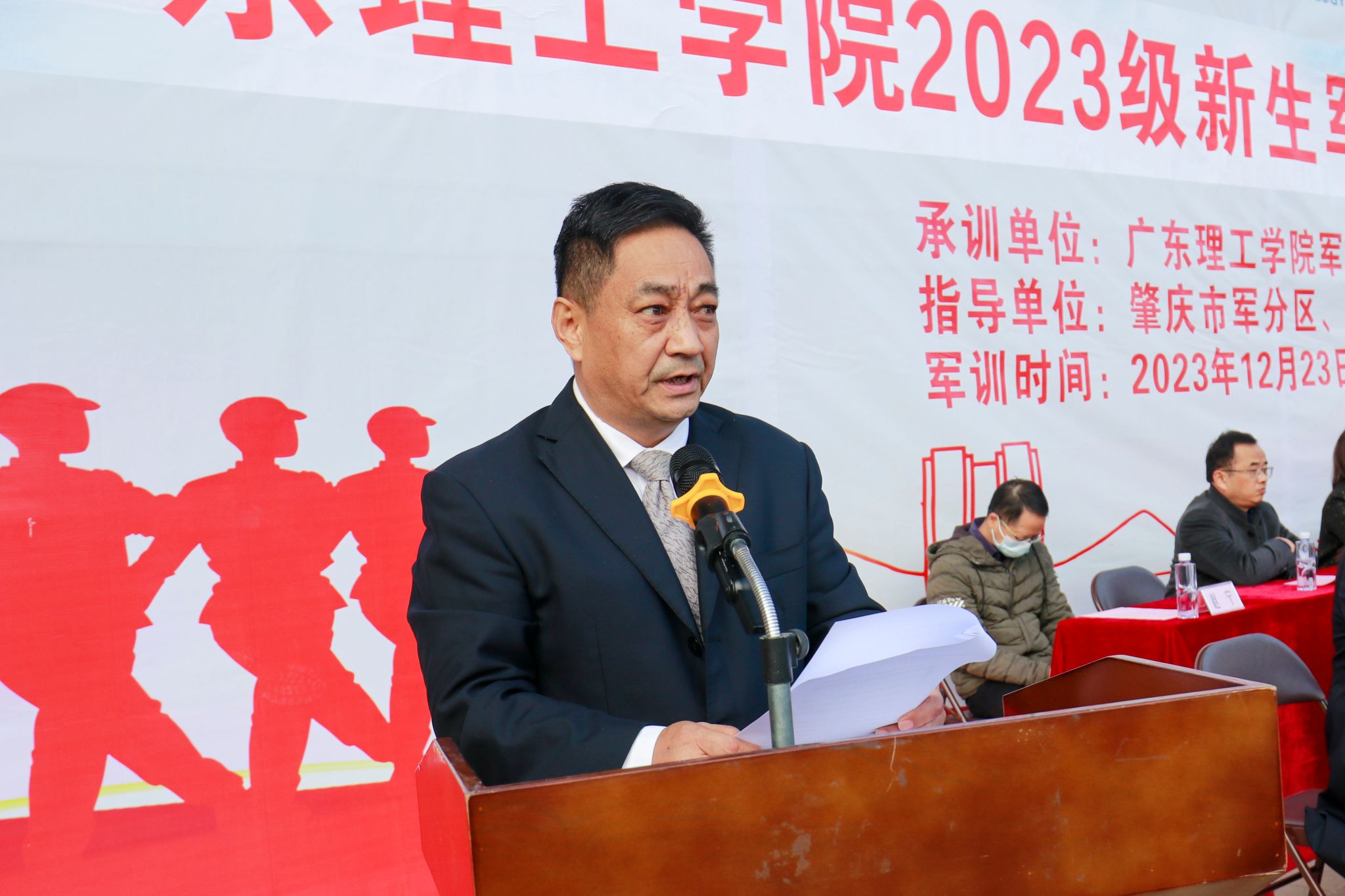 本网讯(新闻中心)为总结2023级学生军训工作、检阅军训成果,表彰军训中表现突出的先进集体和先进个人,1月5日上午9:00,Beat365分别在高要校区与鼎湖校区田径场同步举行2023级新生军训总结暨表彰大会。学校校长张湘伟,党委书记张东生,学校副校长王义宁,党委副书记张宗珊,学校副校长刘香萍、谭锦兴,校长助理于兆勤、唐建宁、舒程、梁伟雄,高要区人武部副部长曾盛境中校、肇庆军分区教员苏文浩,学生处处长谭蒙革,学校武装部部长曾荫初,保卫处副处长吴群峰以及各二级学院党总支书记出席本次大会。大会分别由王义宁、刘香萍主持。大会在庄严的升旗仪式中拉开帷幕。