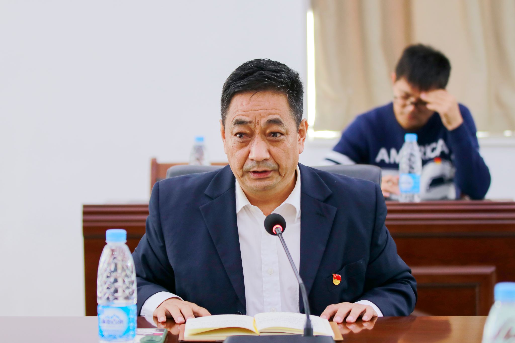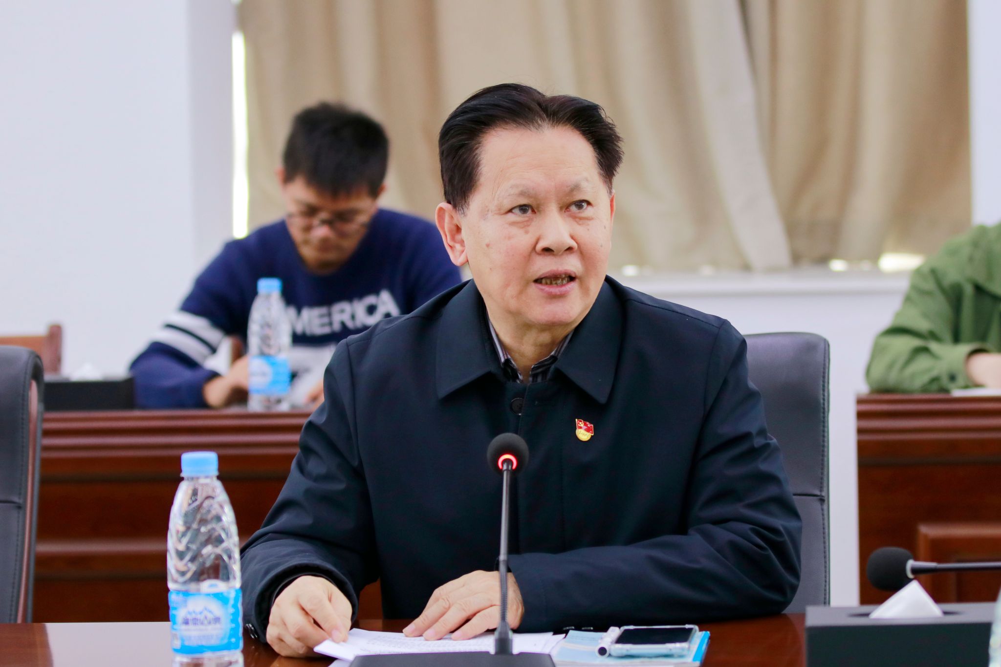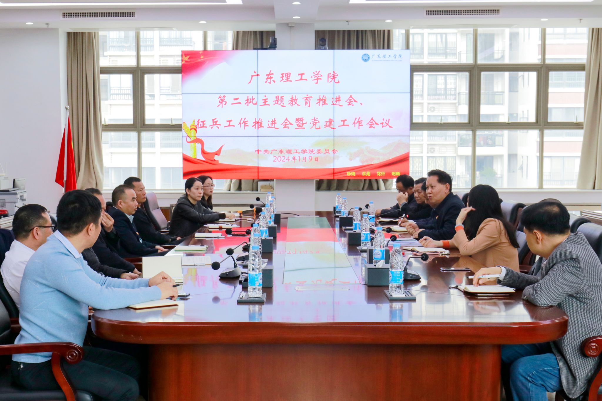 本网讯(宣传部)1月9日,学校在综合楼12楼召开第二批学习贯彻习近平新时代中国特色社会主义思想主题教育工作推进会、征兵工作推进会暨党建工作会议。学校党委正副书记、党委部门正职负责人、行政部门党员正职负责人,各党总支正副书记、直属党支部正副书记等参加本次会议。党委副书记张宗珊主持会议。