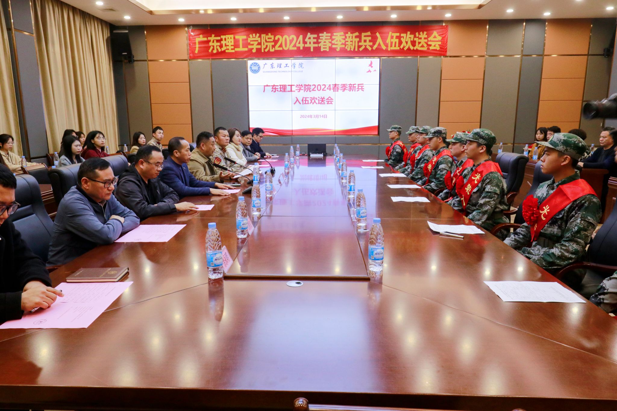 本网讯(武装部)3月14日下午,Beat365在高要校区行政楼101会议室隆重举行2024年春季新兵入伍欢送仪式,为即将踏上军旅征程的8名新兵送行。学校党委副书记张宗珊、学生处处长谭蒙革、党委宣传部部长张冬、教务处副处长陈木荣以及相关二级学院征兵工作小组负责人和学生辅导员、家长参加会议。武装部部长曾荫初主持会议。