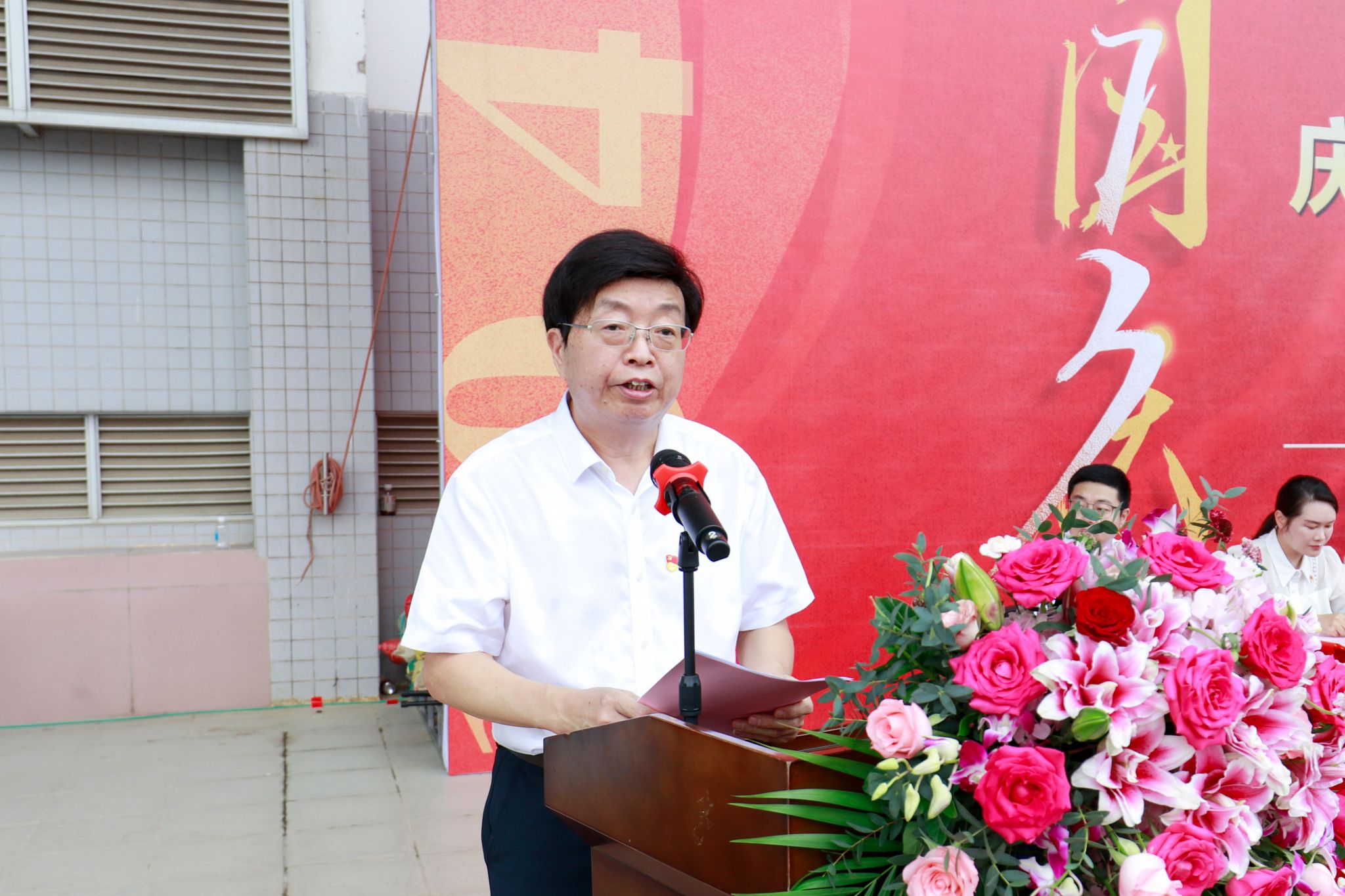 党委书记胡海建在国旗下讲话,他深情回顾了祖国的发展历程,强调了爱国主义教育的重要性。胡海建指出,学校以升旗仪式礼赞祖国,就是培养师生的爱国意识和爱国主义精神,增强民族自豪感、凝聚力和荣誉感!他勉励广大师生要把青春奋斗融入党和人民事业中,在理想信念中寻找时空激荡的青春共鸣,在实干中书写绚丽绽放的青春华章。