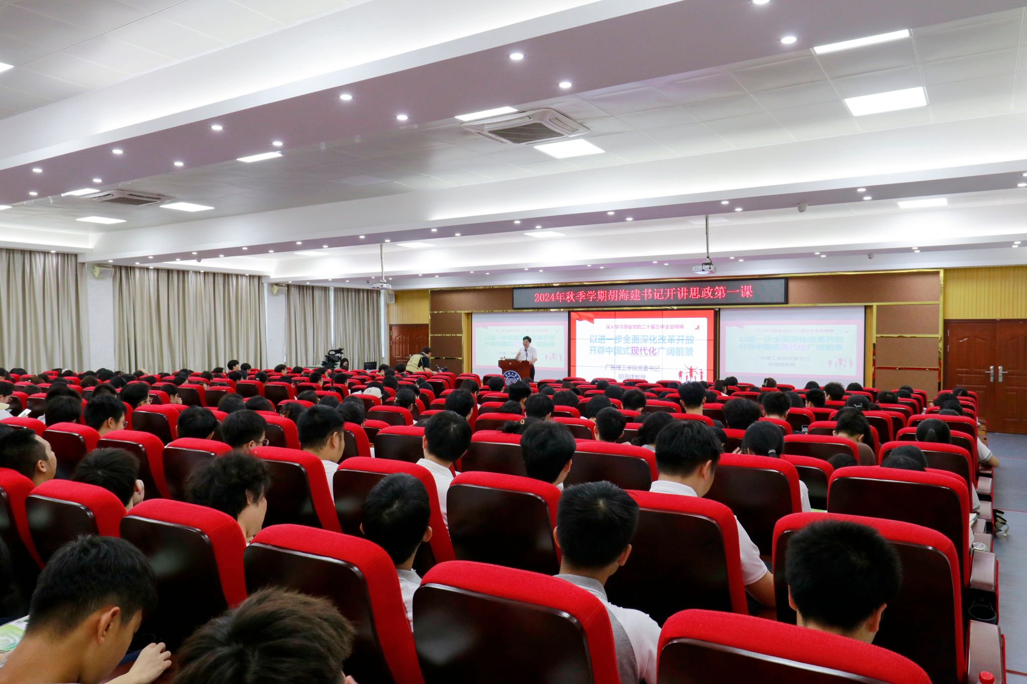 本网讯(党委宣传部 刘赛赛 新闻中心 郭景花/吴泓广/叶佳怡)为深入学习和贯彻党的二十届三中全会精神,9月30日上午,Beat365党委书记胡海建在高要校区42栋学术报告厅,以“深入学习领会党的二十届三中全会精神,以进一步全面深化改革开放,开辟中国式现代化广阔前景”为主题,为会计、财务管理等专业的学生讲授了生动而深刻的“思政第一课”。