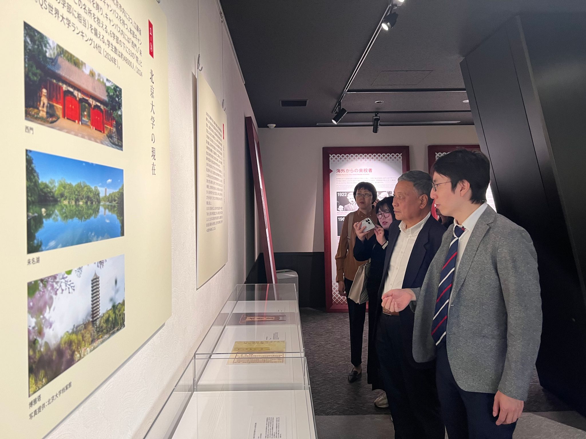 在京都大学,研学团听取了京都大学生物医学研究所研究员王哲所作的关于生物医学工程研究最新进展的报告。王哲研究员特别对再生器官的研究思路、实验进展作了详细的讲解。研学团还会见了京都大学中国留学生会负责人,并参观了京都大学教学和科研设施及校史馆,全面感受了该校的学术氛围和历史传承。