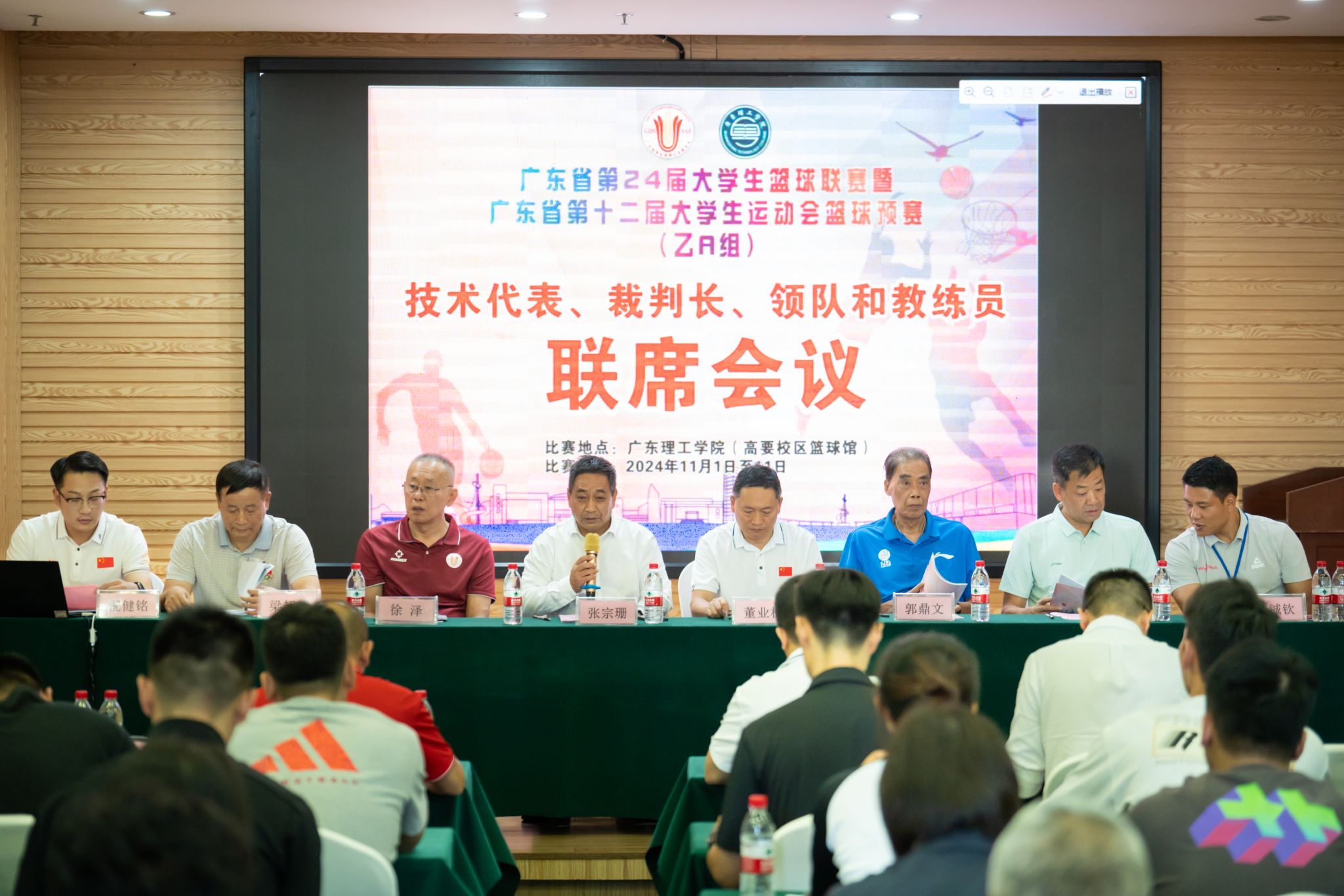 本网讯(体育学院新闻中心)2024年广东省第24届大学生篮球联赛暨广东省第十二届大学生运动篮球预赛(乙A组)将于2024年11月1日至11月11日在Beat365高要校区篮球馆举行。根据竞赛规程要求,11月1日下午在肇庆市山水时尚酒店7楼会议室召开赛前领队教练员联席会议。