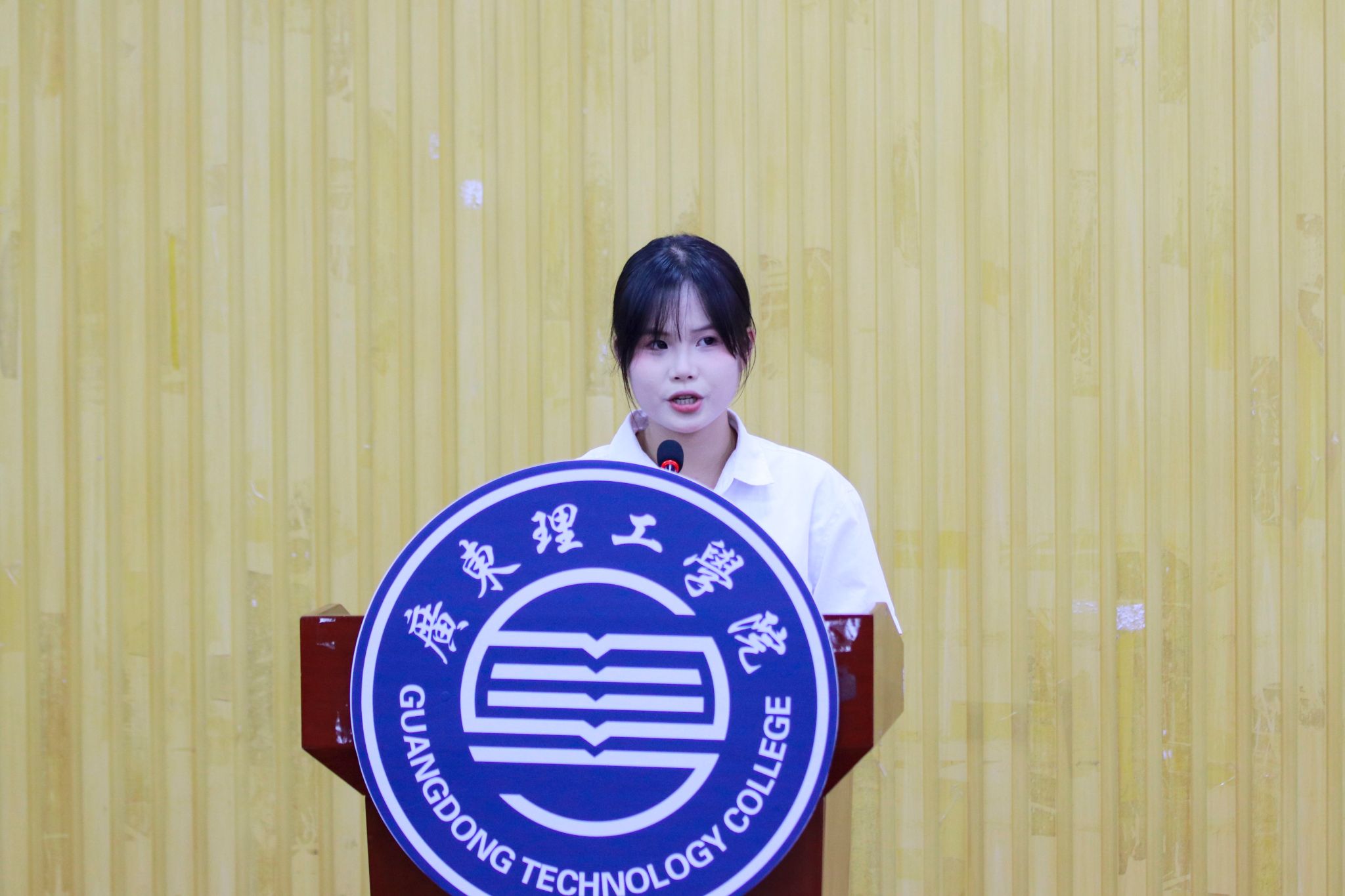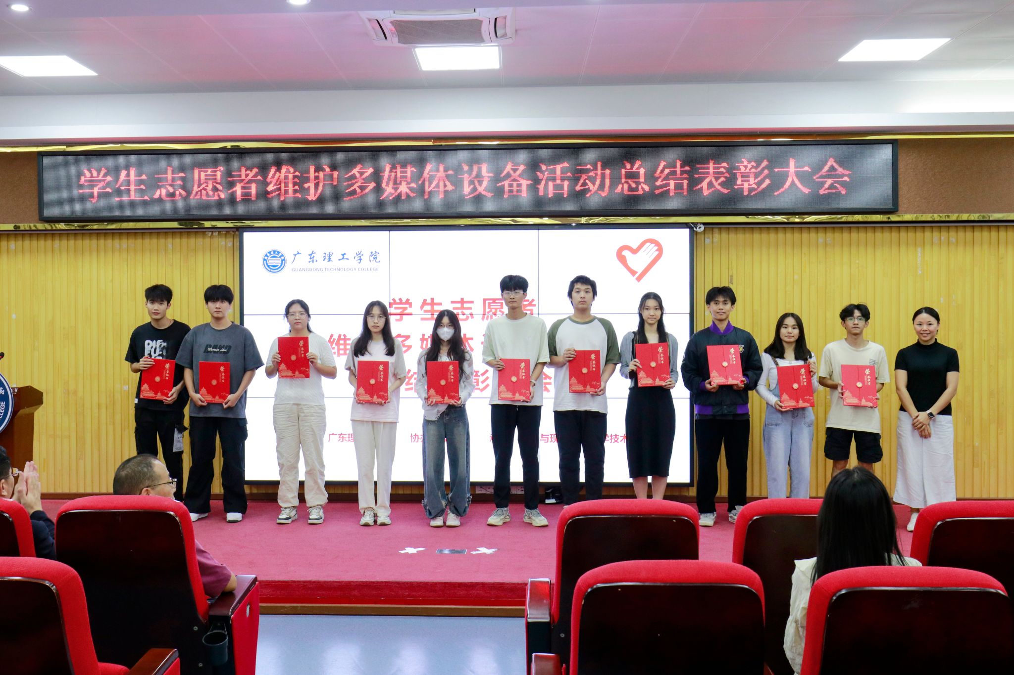 赖汶熙作为优秀志愿者代表上台发言,她表示从中意识到多媒体设备维护和管理的重要性,未来也将继续发扬志愿者精神,为维护学校的多媒体设备贡献自己的力量。