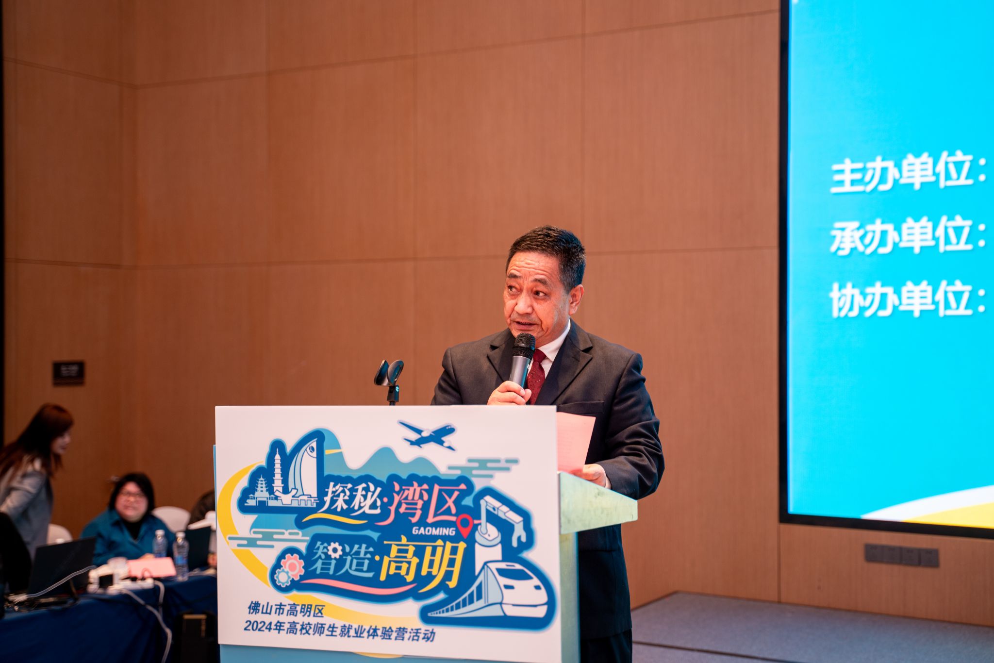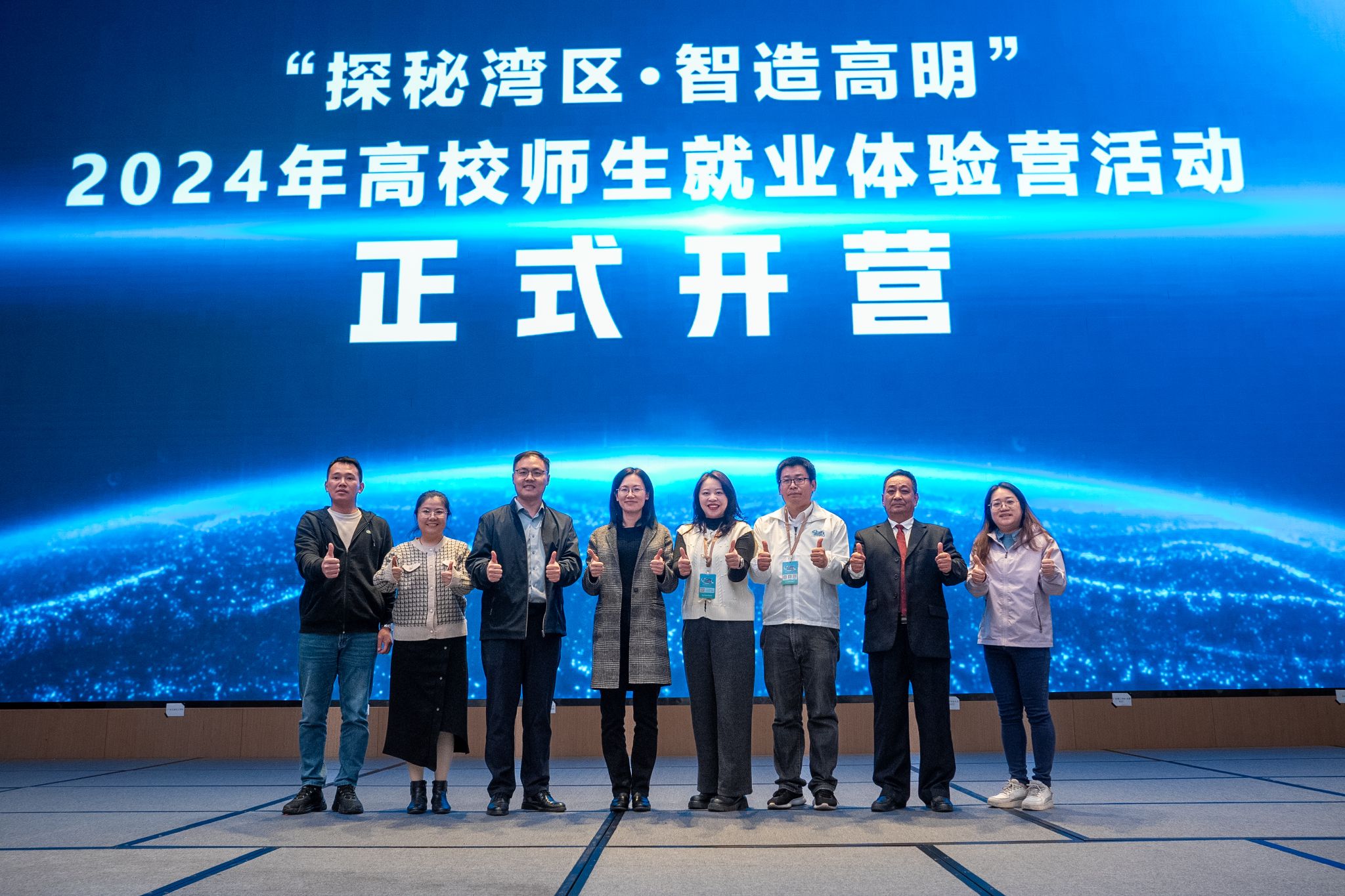活动启动仪式上,佛山市高明区人社局领导、高校领导和企业代表共同按下启动按钮,宣告“探秘湾区·智造高明”2024年高校师生就业体验营正式启动,参与本次活动大学生们即将踏上一段充满机遇与挑战的就业体验之旅。