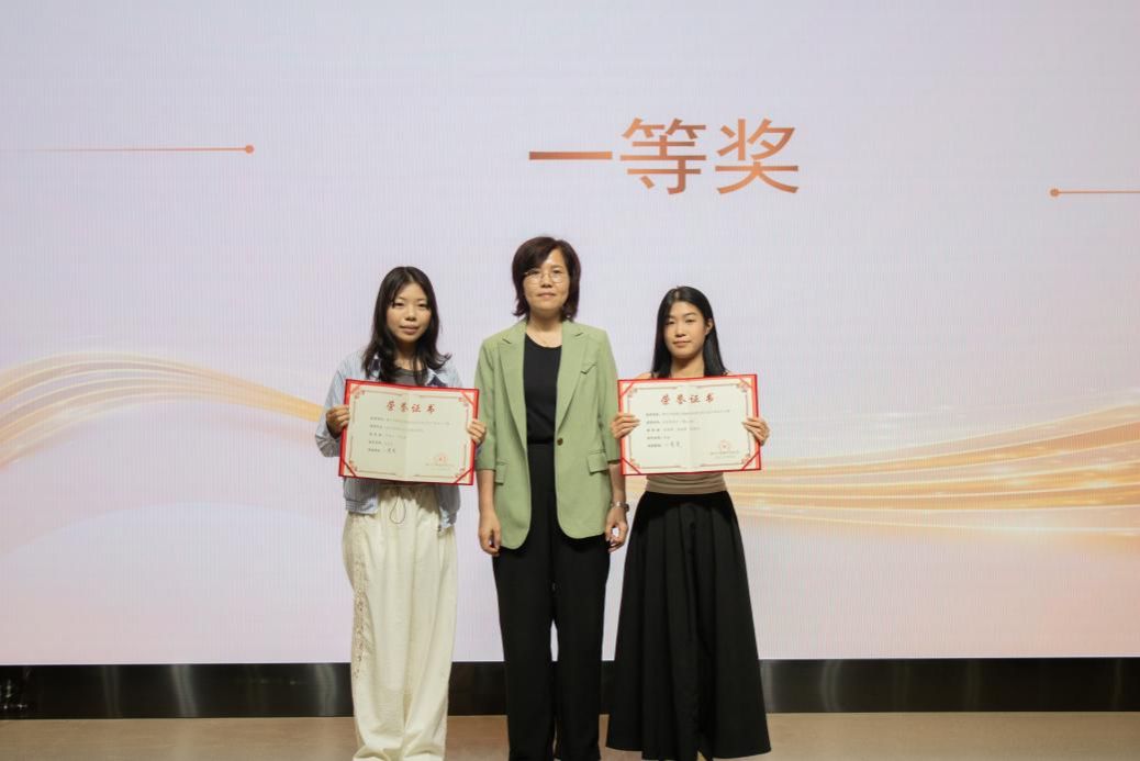 获得二等奖的选手分别是李旭如《八卦镬居:古韵交织的回响》(指导老师:陈圣语、郑晓涵),蓝金燕、徐佳仪《蝠韵蝶章》(指导老师:方琳),周人静秋、梁樱《青花山水纹觚》(指导老师:文雅),周琦、何海宁、张紫嫣《五“蝠”临门印章礼盒包装设计》(指导老师:朱铁男、汪佳莹),由艺术设计学院常委书记赵宁上台为获奖选手颁奖;