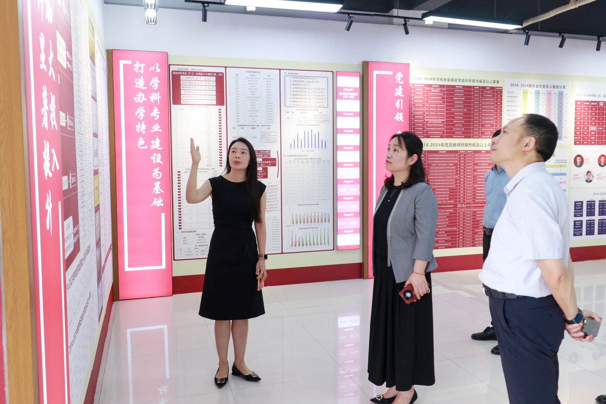 会前,广东岭南职业技术学院副校长徐萍一行参观了图书馆、学校本科办学十年成就展展馆等。