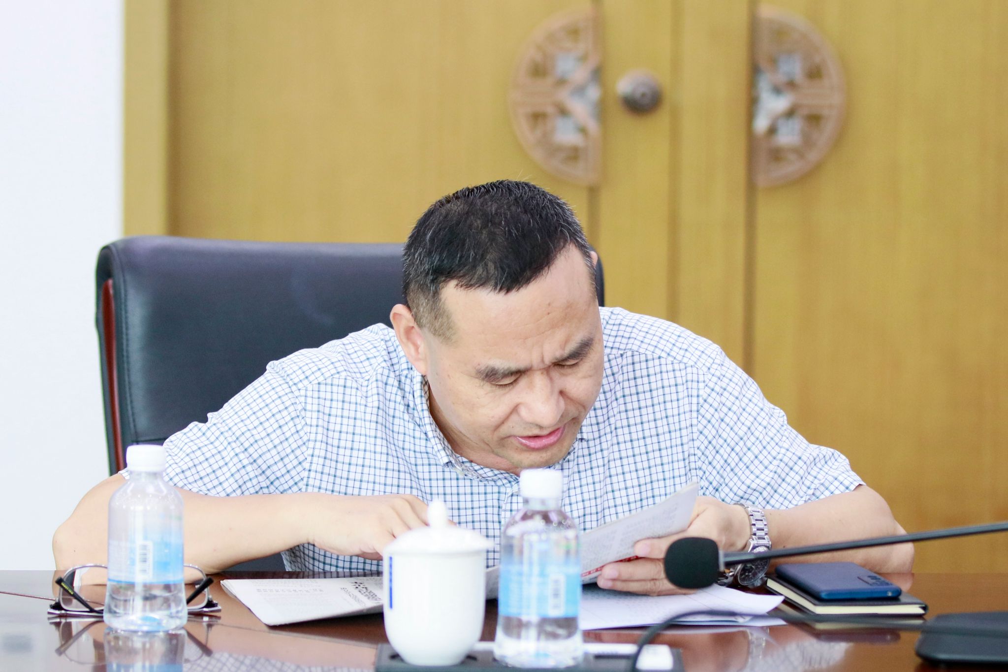 本网讯(宣传部)6月17日上午,学校党委在综合楼12楼会议室召开会议,围绕深入学习贯彻习近平总书记重要讲话精神、庆祝中国共产党成立104周年表彰工作及相关事项进行研究部署。会议由党委书记胡海建主持。