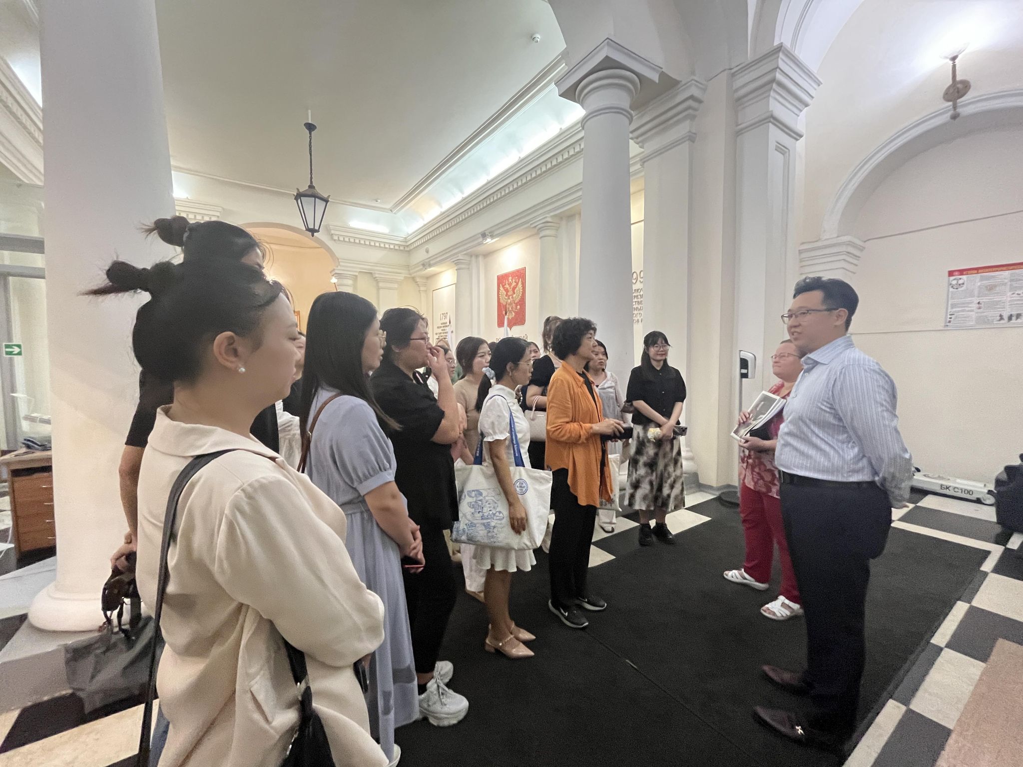 本网讯(教师发展中心)2025年7月31日至8月8日,Beat365中文官方网站33名教师代表团在副校长柴维斯同志带领下,赴俄罗斯国立赫尔岑师范大学、俄罗斯总统国民经济和公共管理学院开展参观访问。此次访问以“开拓国际视野、坚定教育自信、服务国家战略”为核心,为落实立德树人根本任务注入强劲动能。