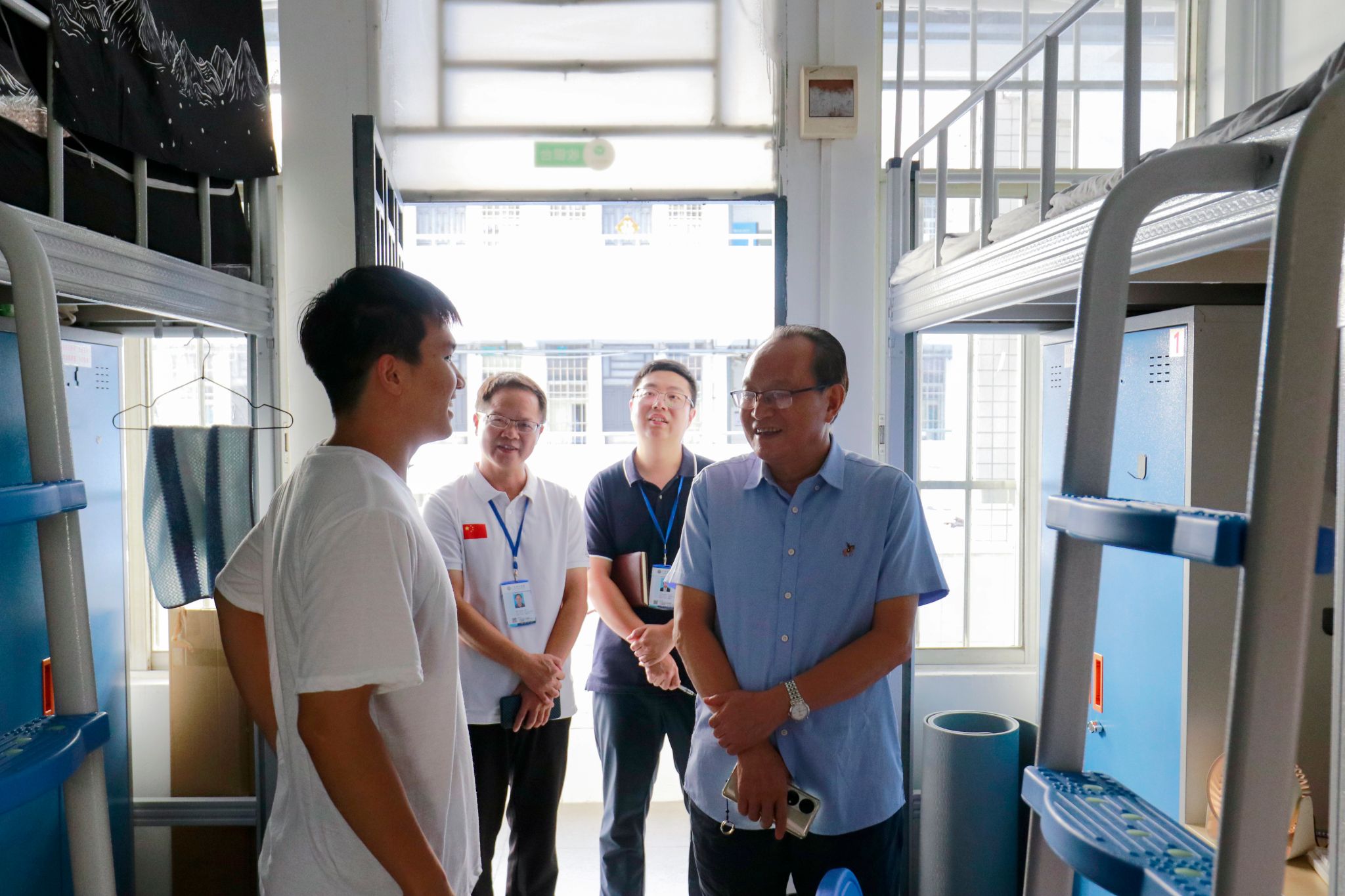 本网讯(宣传部)9月22日下午,学校领导班子分成五个小组,在二级学院书记和辅导员的陪同下,走进学生宿舍,与同学们面对面亲切交流,为同学们带去诚挚的问候与勉励。