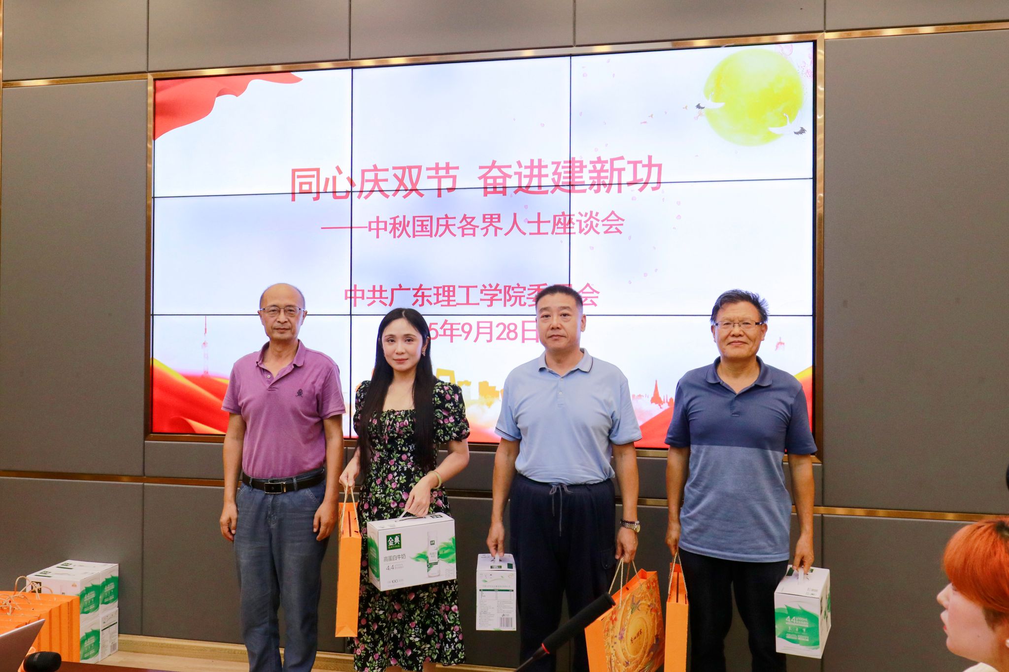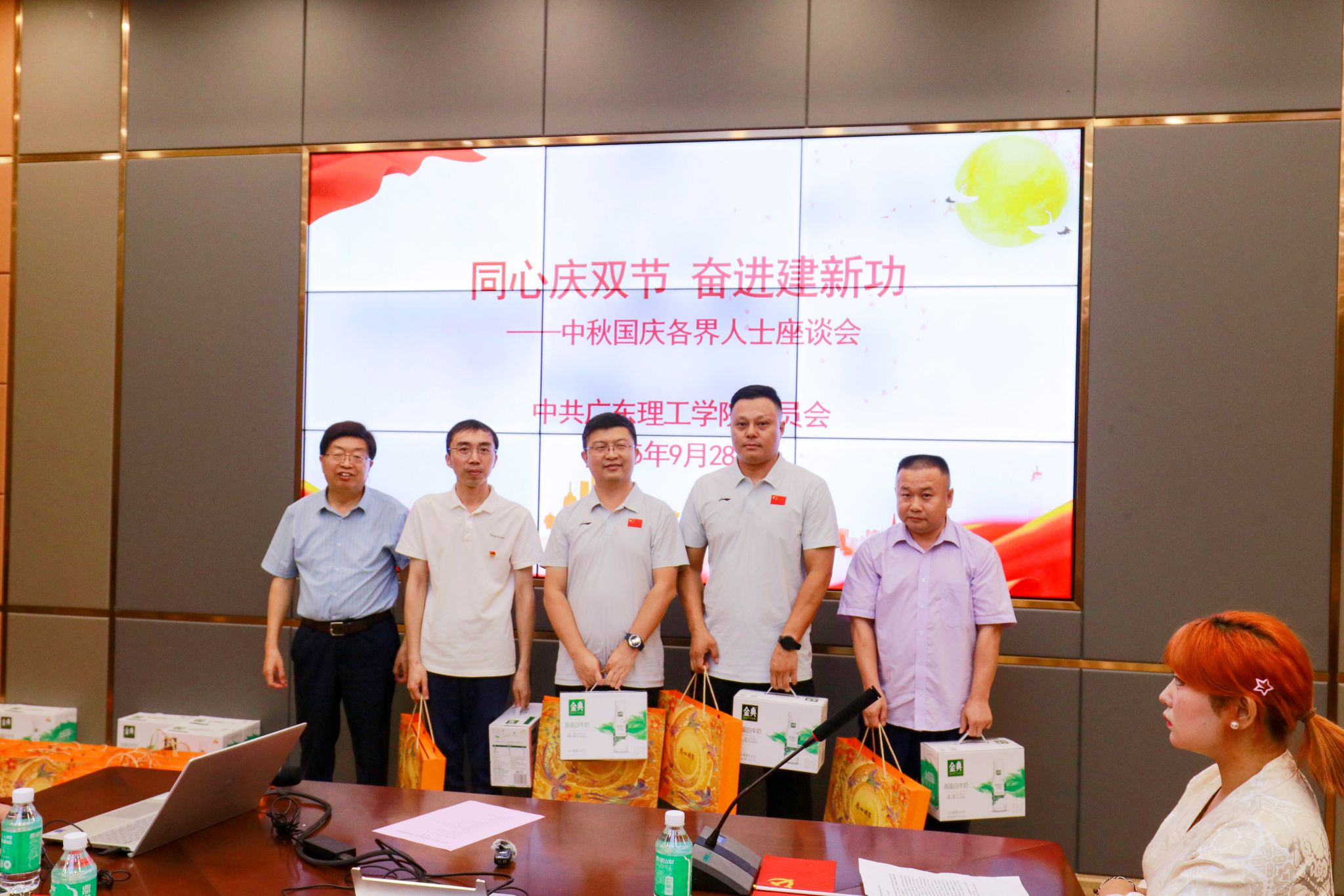 本网讯(组织部)金秋送爽,丹桂飘香。在中秋、国庆双节来临之际,为凝聚统一战线智慧力量,共话学校发展蓝图,9 月 28 日,学校党委于行政楼会议室召开”同心庆双节 奋进建新功“中秋国庆座谈会。校党委书记胡海建出席会议并讲话,党委组织部(统战部)部长黎伯毅主持会议。党委学生工作部部长谢桂袖,教务处处长张俊林、人事处处长黄志华等相关部门负责人,以及侨联主任赵宇宏、民盟主任曾亮及民主党派代表和学生代表共同参会。