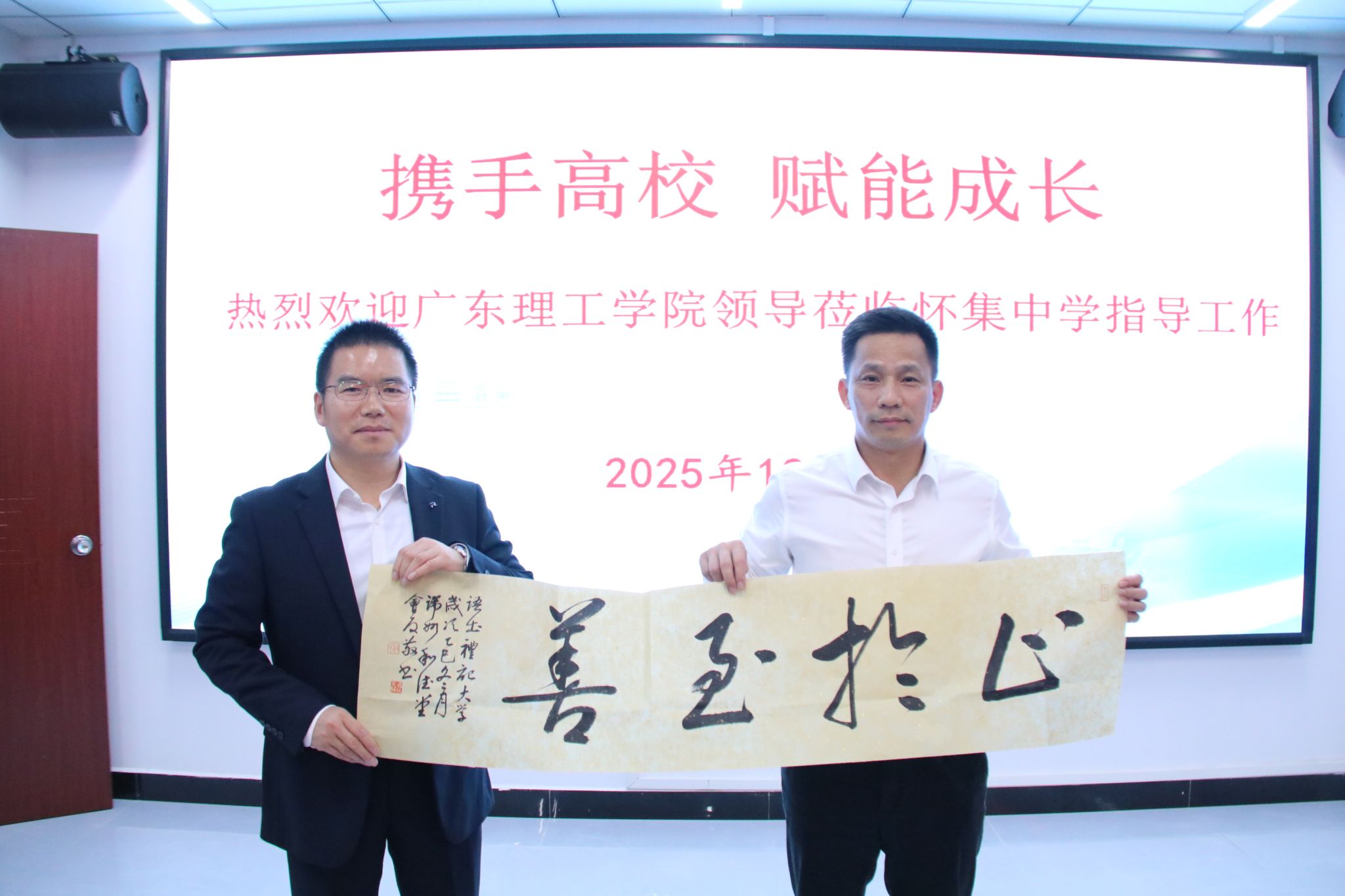 交流仪式上,张宗珊副书记代表学校向怀集中学赠送端砚,象征两校携手共进、共育新人的美好愿景;黎会友副书记赠予亲笔题写的“止于至善”墨宝,以文化纽带深化友谊。怀集中学负责人表示,两份礼物将成为双方党建合作的重要见证。