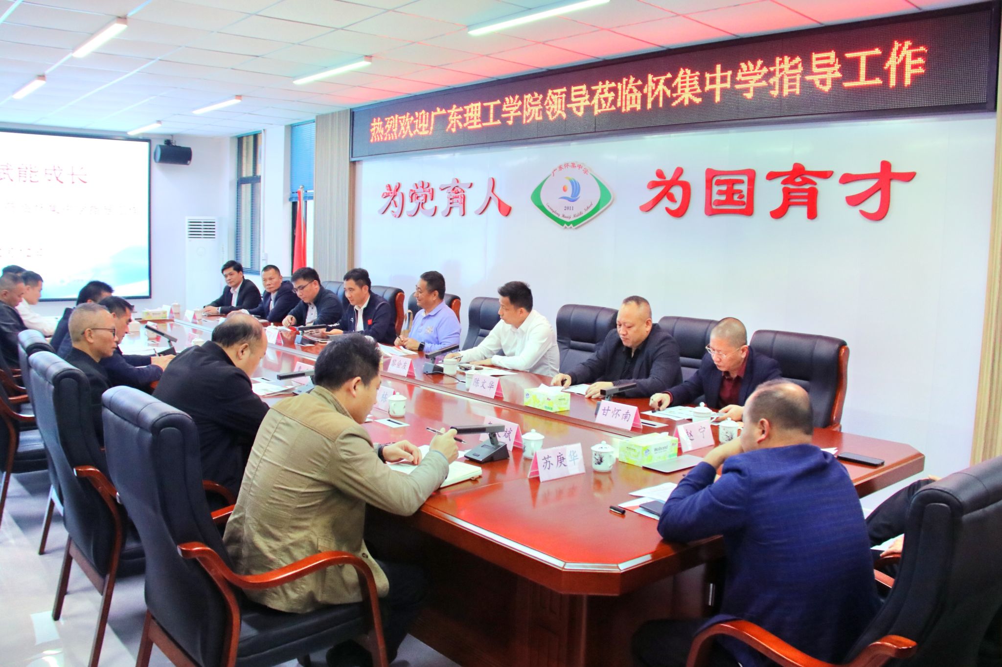 12月12日,代表团赴怀集中学进行党建共建交流。座谈会上,双方围绕党建共建、课程育人、教师发展、学生培养等议题展开深入研讨。黎会友副书记介绍了学校在党建、学科建设、人才培养及产教融合等方面的成果,他强调以高质量党建引领高质量发展,并期待以此次合作为契机,推动大中小学协同育人机制创新。怀集中学校长李波明分享了学校在党建品牌打造、德育体系建设等方面的经验,希望借助高校资源提升育人质量,共同培育时代新人。怀集县委教育工委副书记陈文在会上总结道,此次校际深度互动是推动区域教育高质量发展的重要举措,并期待两校合作早日结出务实成果,共同助力学生成长成才。