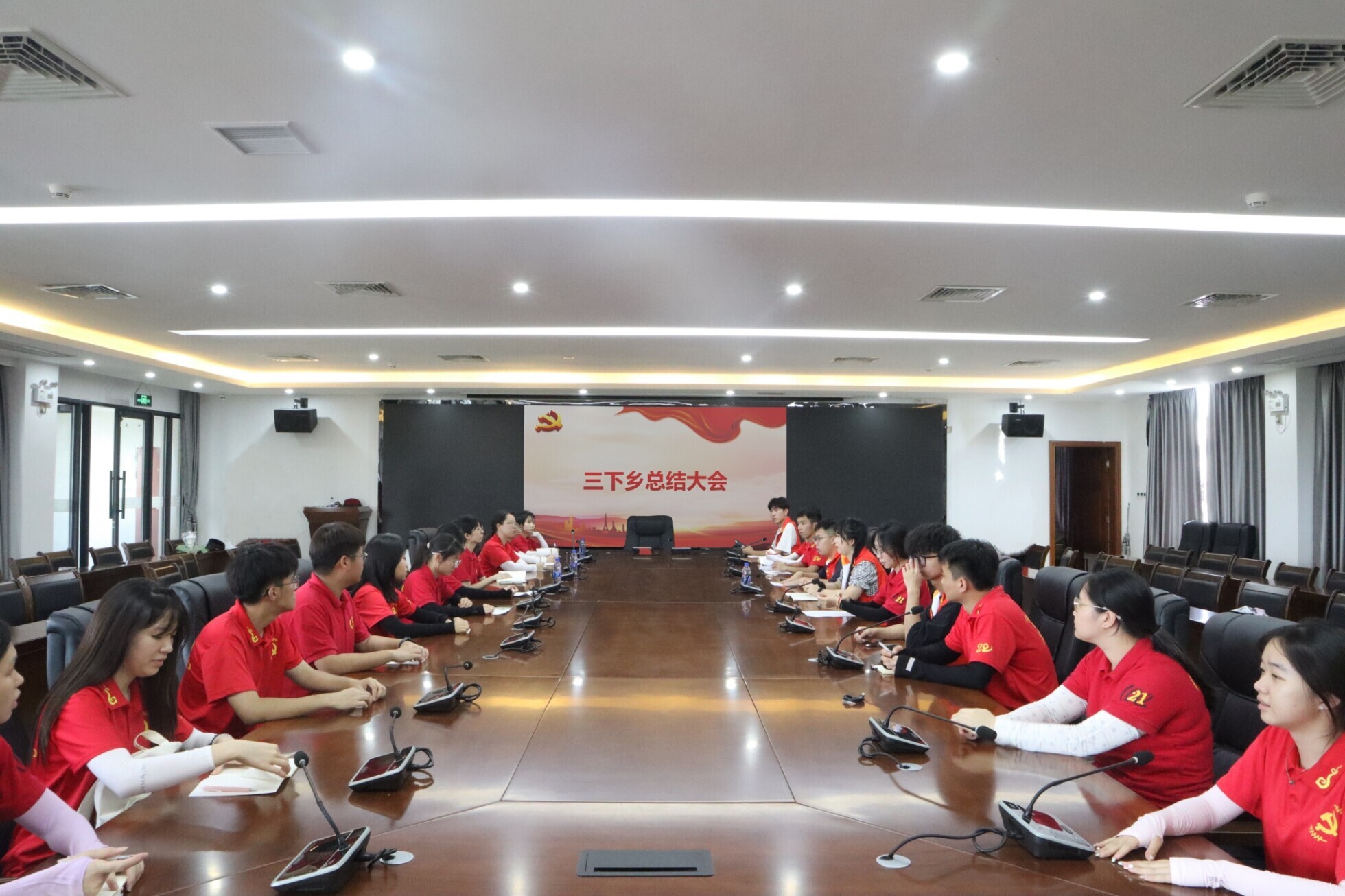 图为实践团召开三下乡总结会议。中国青年网通讯员 戴俊柔 摄