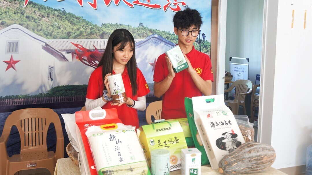 图为实践团进行电商宣传。中国青年网通讯员 戴俊柔 摄