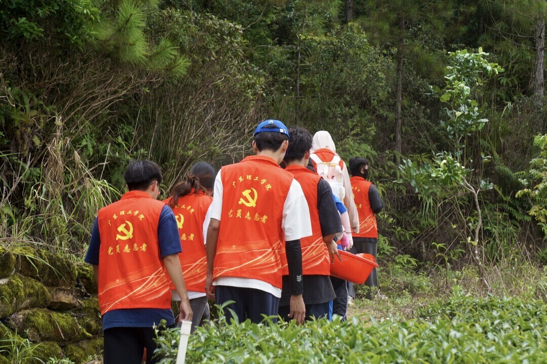 图为实践团在莲花山采茶。中国青年网通讯员 戴俊柔 摄