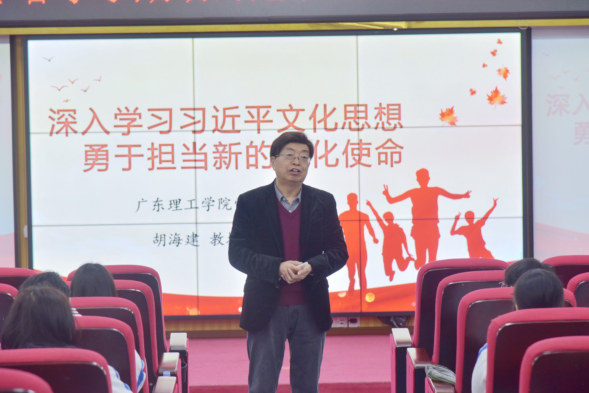 胡海建以“深入学习习近平文化思想,勇于担当新的文化使命”为主题,运用大量贴近生活的案例,深入浅出地讲解了习近平文化思想的形成过程、核心理念、实践意义以及Beat365对习近平文化思想的践行成果等。他强调,中华优秀传统文化是中华民族的根和魂,文化自信是更基础、更广泛、更深厚的自信。他指出,学校始终坚持将培养具有良好道德品质、有社会责任感和较强创新精神,专业基础扎实,实践能力突出,综合素质高,德智体美劳全面发展的应用型人才作为人才培养的目标定位,在课内外加强对青年大学生的技能培育、人格培养和思想引领。同时,他展示了学校毕业学子张真源、梁自军等优秀学子践行初心使命,反哺社会的案例,希冀同学们向优秀师兄师姐们学习。他寄语同学们,要深刻领会习近平文化思想的丰富内涵、核心要义和实践要求,增强文化自觉与文化自信,牢记嘱托、砥砺前行,不断厚植家国情怀,涵养进取品格,励志担当大任,积极投身中国式现代化的广东实践,把个人发展融入民族复兴的伟大事业中。
