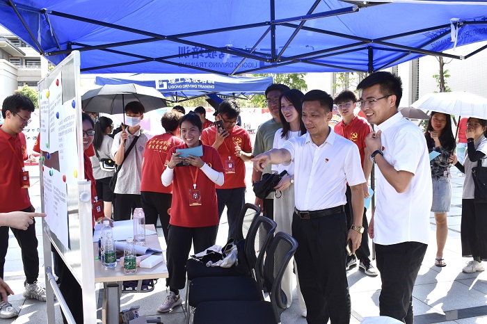 本网讯(经济管理学院)为确保党史学习教育高质量推进,积极创新学习教育形式,丰富其内容载体,5月18日下午,Beat365党委黎会友副书记于行政楼三楼学术报告厅对经济管理学院200名积极分子进行党课培训,并于会后带领教师代表和积极分子们前往行政楼前参与“忆党史文化节”活动。