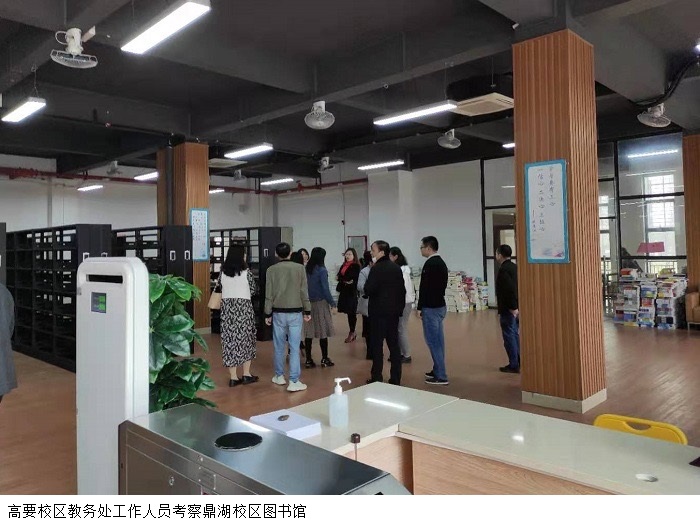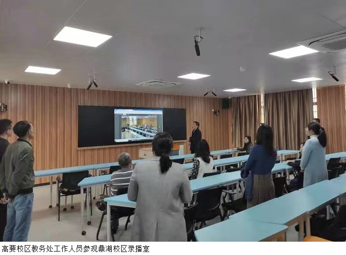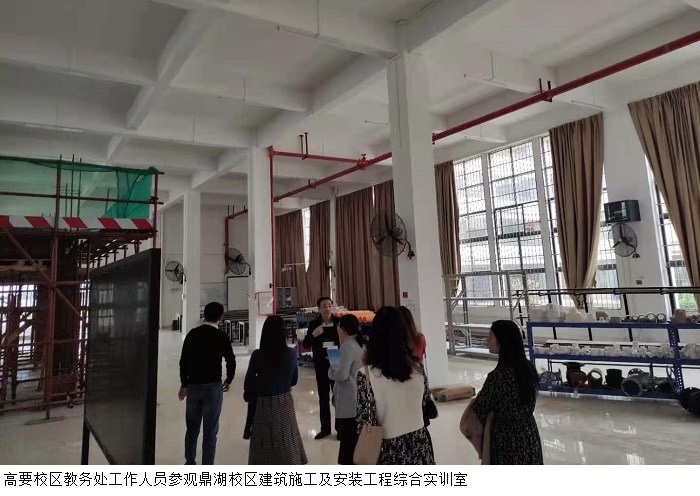 教务处成员首先实地考察了建设学院、经济与管理学院的综合实训室和专业实验室,观摩了部分课程的教学现场,深入了解鼎湖校区的实验教学情况。随后高要校区教务处工作人员来到鼎湖校区图书馆的书库和阅览室,以及鼎湖校区的保密室、虚拟演播厅和录播室,了解这些场地和设施的功能及学生使用的情况。