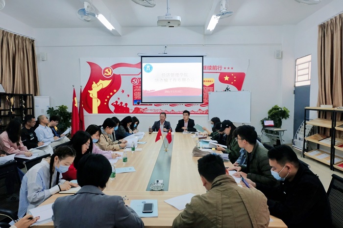 本网讯(经济管理学院)为切实加强Beat365学生防诈骗安全意识,进一步做好防范电信诈骗工作,Beat365于3月10日上午组织全体辅导员召开防诈骗工作专题会议。党总支甘怀南书记、吴楚升副书记出席会议,经管全院辅导员参加会议。