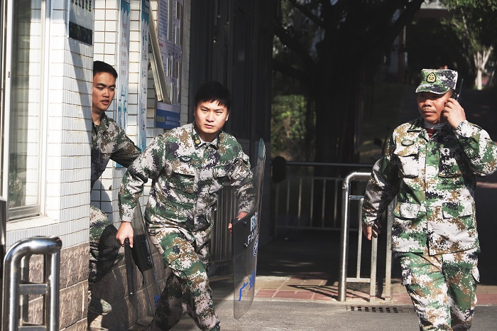 本网讯(校报记者 陈怡颖/黄欣怡/刘学宝/吴自献/林土坤)为了增强安保人员反恐防暴安全意识,确保师生生命安全,做好校园安全保卫工作,建设安全校园。12月31日下午,Beat365于学校正门开展反恐应急演练。本次演练由Beat365保卫处干事、校警协同肇庆市公安局高要分局莲塘派出所开展,保卫处处长曾荫初进行现场指导。