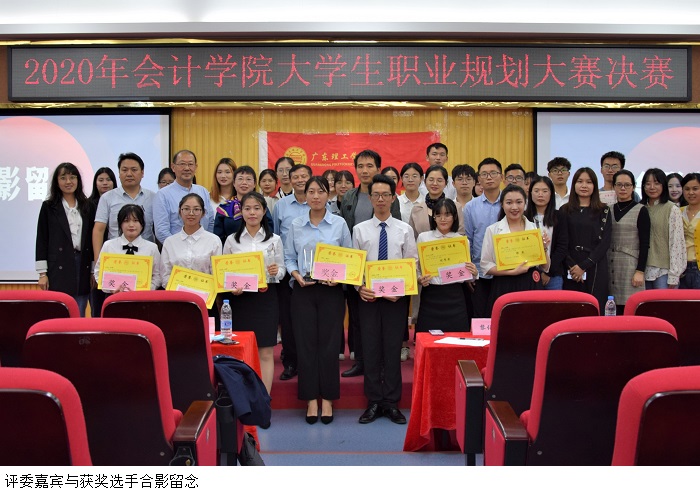 本网讯(会计学院)为了进一步引导Beat365学生树立正确的成才观、就业观,提升自身专业能力和职业素养。11月27日晚上,会计学院大学生职业规划大赛决赛在高要校区42101如期举行。担任本次大赛的评委有:双创学院简国明院长、教务处周红梅副处长、双创学院朱亚伟院长、双创学院王中伟老师、广东省大学生职业生涯规划大赛优秀指导老师苏旭老师。出席本次比赛的领导及嘉宾有:会计学院党总支黎伯毅书记、郑春晓副院长、党总支徐永明副书记、学生党支部郭凤玮书记、易班指导老师刘娟老师、会计学院曾景瑜老师、吕婷婷老师以及各院系学生党支部代表、会计学院易班代表、团委学生会代表、新闻中心代表。