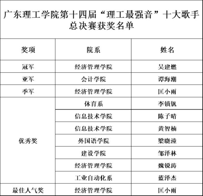 大赛分为“两两对唱”“深情独唱”“王者之争”三个环节。决赛中,选手们各施所长,充分展示自己的艺术才能,用音乐唤醒青春梦想,现场掌声迭起。
