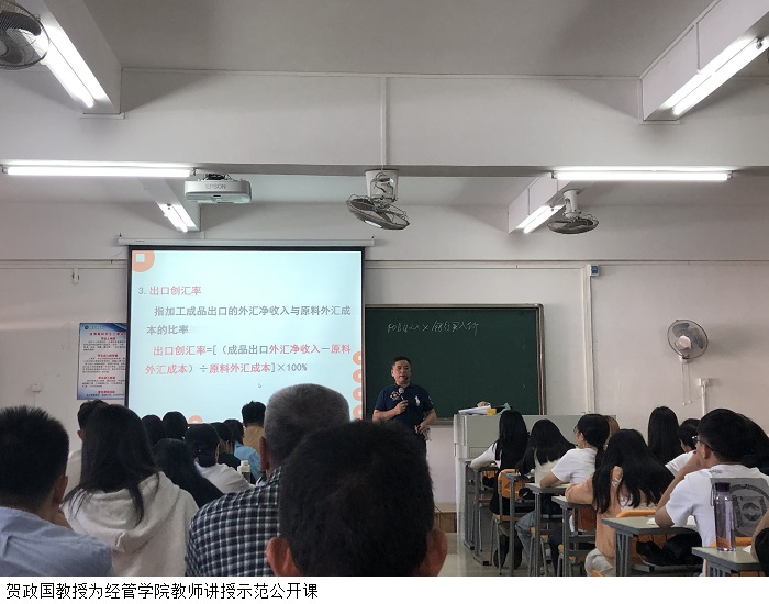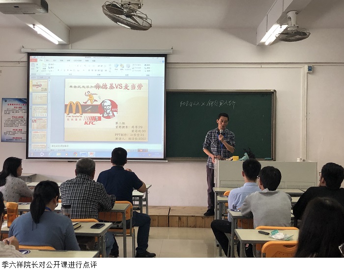 本网讯(经济管理学院)为提升青年教师思政教学能力,加强教学经验交流,11月10日下午,贺政国教授为经济管理学院本学期入职的新老师、新任导师及国际贸易教研室全体教师讲授了一堂示范公开课,季六祥院长、陈光春教授作为点评嘉宾应邀参会。