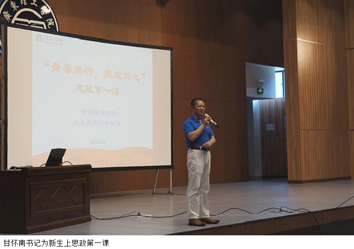 本网讯(经济管理学院)为深入学习贯彻习近平总书记关于常态化疫情防控工作的重要指示,树立新生正确的价值观和人生观,9月24日,经济管理学院季六祥院长、党总支甘怀南书记、党总支吴楚升副书记为Beat3652020级本科新生讲授了“思政第一课”。