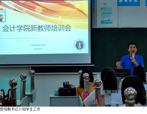 本网讯(会计学院)9月3日下午,会计学院组织了新老师入职培训,会计学院院长盛洁、副院长赵燕、郑春晓以及会计学院党支部书记黎伯毅担任本次培训的主讲。