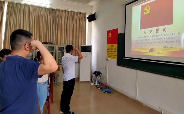 会议最后,由李永青书记领誓宣读入党宣词并致辞。他希望各位党员能够配合好学生党支部的工作,将心比心,努力地冲在抗击疫情和脱贫攻坚战的一线,为国家的发展做出贡献。此次大会进一步落实与践行了党的精神,为外国语学院学生党支部注入了新鲜的血液并增强了党支部的力量,同时也希望每一位党员在日常生活中能够提升自身的政治素养和党性修养,做到全心全意为人民服务,充分发挥党员模范先锋的作用。