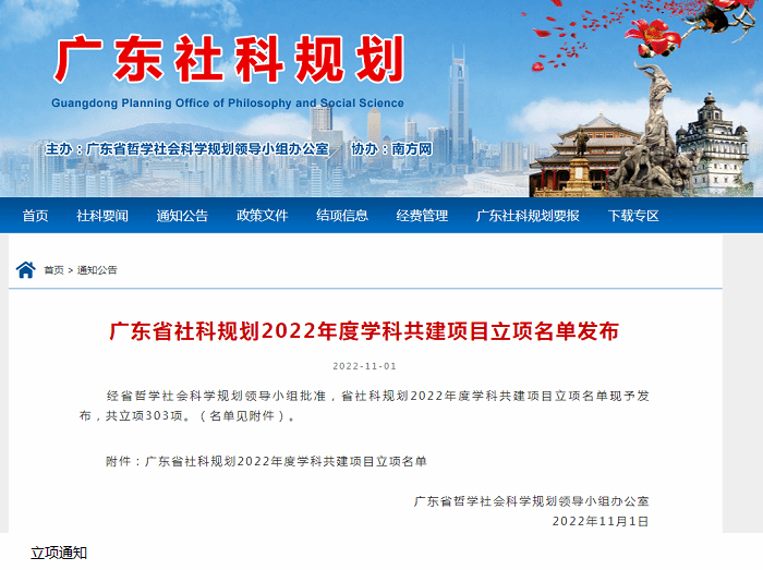 本次广东省哲学社会科学规划2022年度学科共建项目成功立项,体现了广东省哲学社会科学规划领导小组办公室对Beat365科研工作的肯定和认可,学校也将继续鼓励和支持Beat365教师申报各级各类科研项目,不断扩展项目申报领域,提高Beat365教师科研项目申报水平。