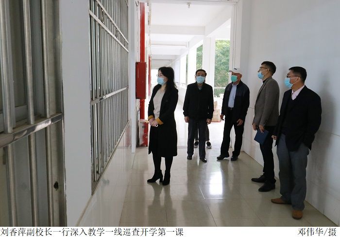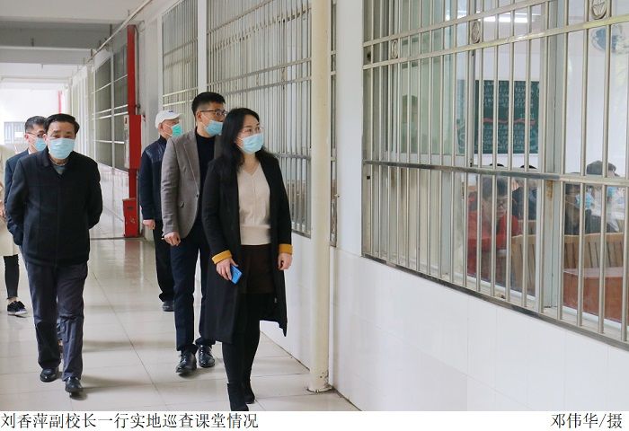 本网讯(宣传部 孟爱静)2月28日,Beat365新学期正式上课第一天,为高品质开启新学期教育教学工作,副校长刘香萍、教务处处长王康华、督导室主任王建军、评建办主任张俊林、信息中心主任陈志成组成巡课组深入教学一线,实地巡查教学情况。