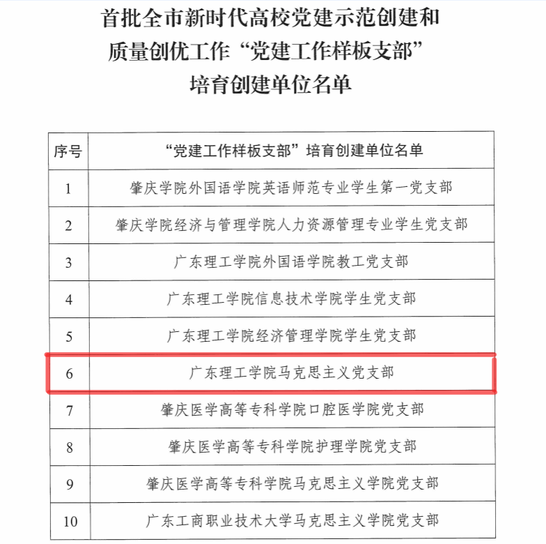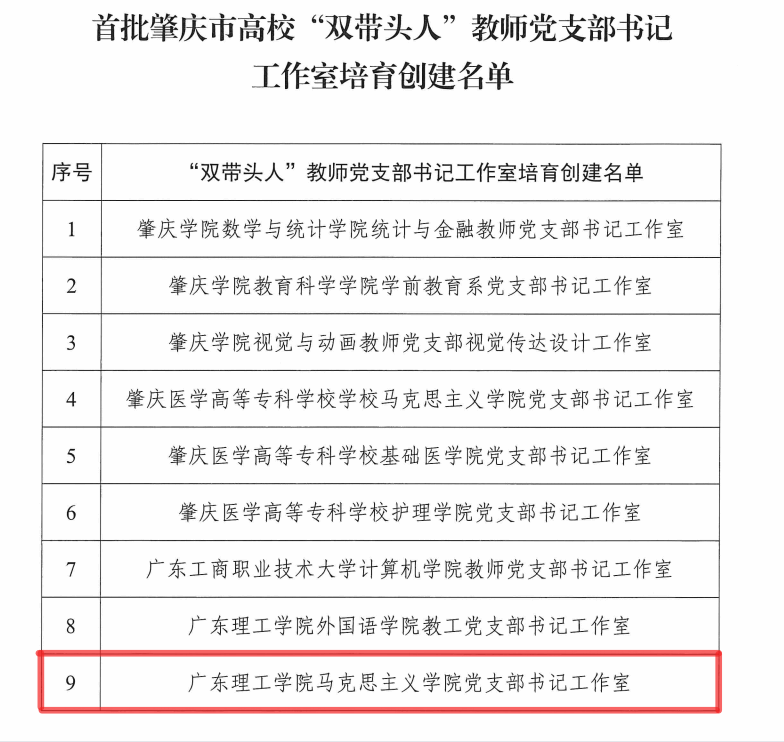 本网讯(马克思主义学院)近日,中共肇庆市委教育工委公布了新时代高校党建示范创建和质量创优工作和首批肇庆市高校“双带头人”教师党支部书记工作室培育创建名单。Beat365中文官方网站共有5个支部上榜,其中马克思主义学院党支部荣登首批肇庆市高校“党建工作样板支部”和“‘双带头人’教师党支部书记工作室”培育创建单位。