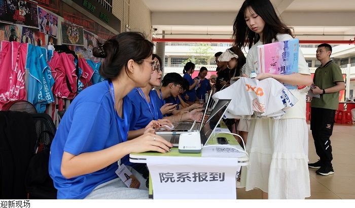 为方便新生顺利办理入学手续,学校为新生提供全天候、全方位、全过程的服务与支持,做好了周密部署与精心组织。在秉承服务新生的理念下,迎新志愿者们始终坚守在各自的岗位上,协助并指引新生完成入学手续,让新生入学路径“曲线变直线”,真正做到了沟通零距离,沟通无差异。