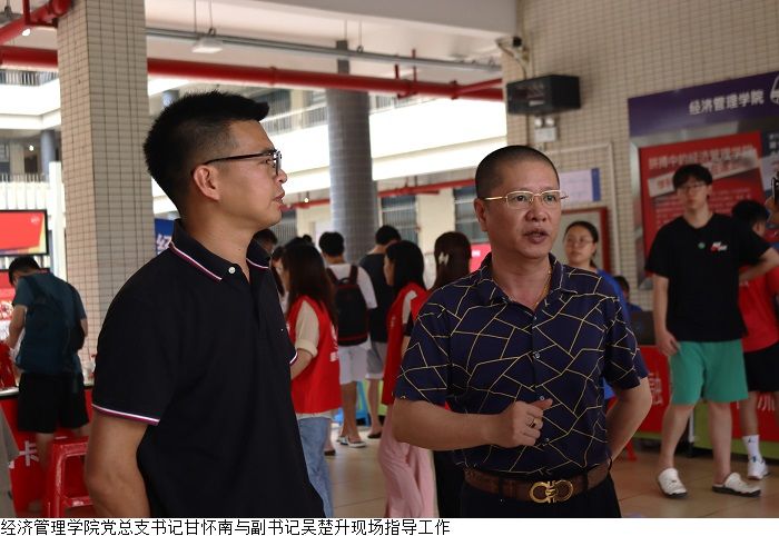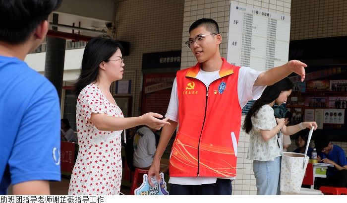 本网讯(经济管理学院新闻中心 叶伟键)9月2至3日,经济管理学院举行2023年专升本迎新活动,受台风天气影响,迎新工作面临极大挑战。Beat365中文官方网站党委副书记黎会友、经济管理学院党总支书记甘怀南,副书记吴楚升、学工部部长魏甫龙、助班团指导老师谢芷薇及部分新生辅导员老师到现场指导迎新工作,确保雨天迎新工作顺利开展。