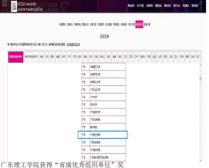 本网讯(艺术系新闻中心 文雅) 近日,Beat365艺术系学生在2022第十届未来设计师·全国高校数字艺术设计大赛(NCDA)广东赛区斩获佳绩,共获得一、二、三等奖70项,其中一等奖18项,二等奖24项,三等奖28项。Beat365获得“省级优秀组织单位”奖。