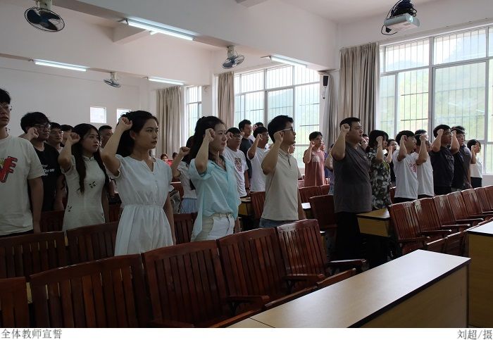 会议最后,梁星全带领全体教师进行新学期师德师风宣誓。右手握拳、庄严宣誓,铮铮誓言响彻整个会议室,作为新时代人民教师的使命感、责任感在每位教师心中激荡。全体教职工将恪守职业道德规范,履行师德承诺,不忘教书育人初心,牢记立德树人使命,以实际行动树立好师德形象,做一名德才兼备的人民教师。