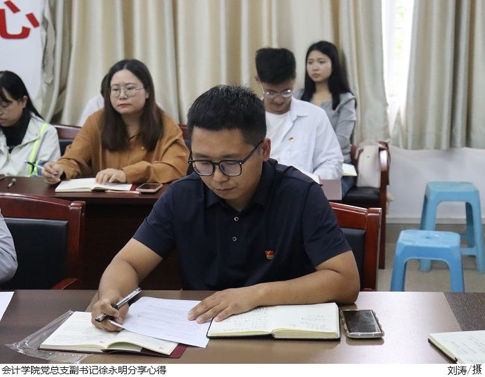 本网讯(会计学院新闻中心 郑妍颖)为深入学习贯彻习近平新时代中国特色社会主义思想,提升党员教师的思想政治素养。10 月 10 日,会计学院党总支于7303召开学习贯彻习近平新时代中国特色社会主义思想专题会议。会计学院党总支书记黎伯毅、副书记徐永明以及全体党员教师参会。