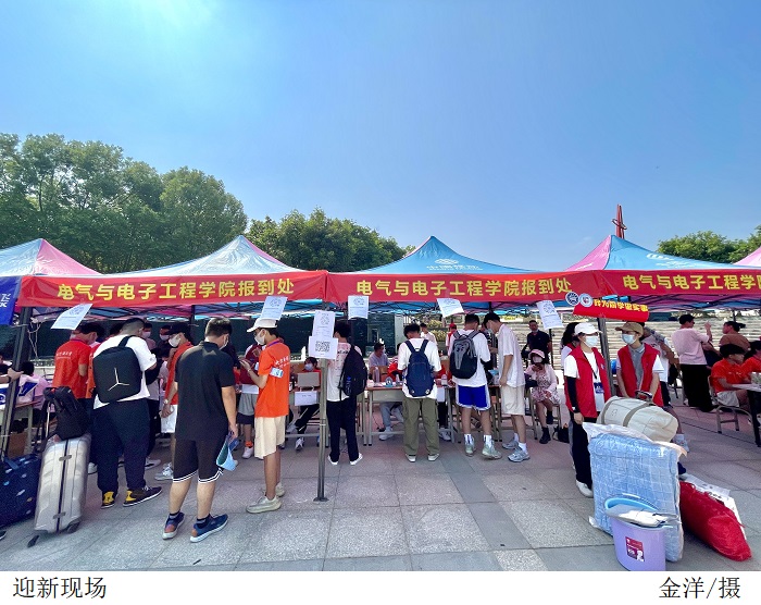 本网讯(电气与电子工程学院 金洋)9月3日—4日,电气与电子工程学院迎来了2022级新生,院长关健、党总支书记陈文华、党总支副书记陈强来到现场查看迎新工作开展情况,并走访学生公寓看望新生。全体辅导员、迎新志愿者各司其职,以热心的服务迎接新生的到来。