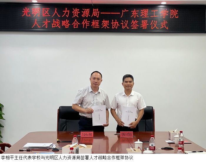 在走访光明区人力资源局时,光明区人力资源局二级调研员彭松华介绍了光明区基本情况、产业布局、发展规划、人才引进政策等。他希望更多Beat365中文官方网站学子来光明区扎根立业,共谋发展。李相平主任介绍了学校办学历史、发展现状、校企合作、产业学院及“3+1”应用型人才培养模式等情况。校地双方就人才引进、校企互动、后续合作等事宜做了进一步沟通,会谈后双方签署了人才战略合作框架协议。