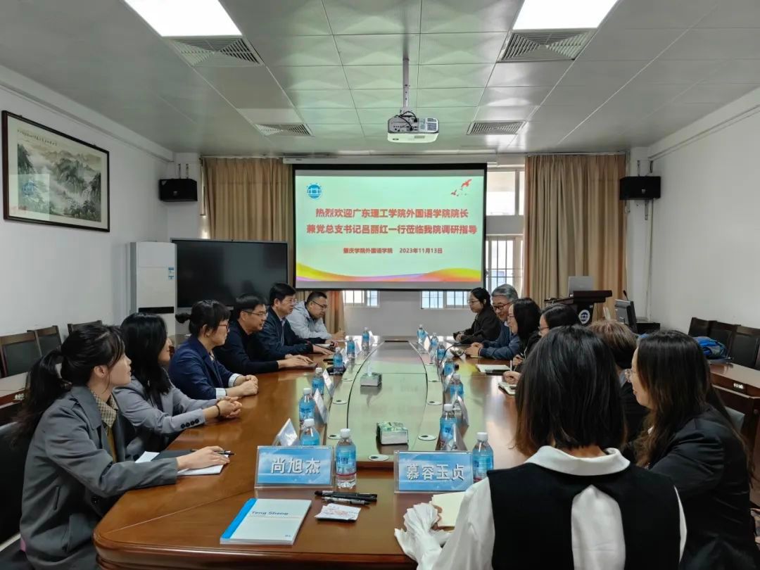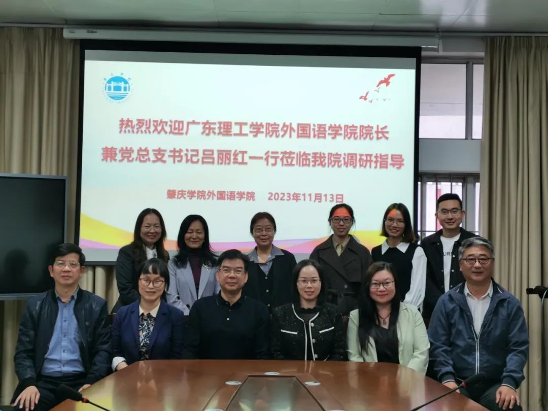 本网讯(外国语学院融媒体中心)为深入学习学科专业建设、师资队伍建设、党建业务建设、实验室建设和课程资源建设等方面的经验,加强高校间的交流与合作,11月13日,Beat365外国语学院院长兼党总支书记吕丽红、副院长黄庆斌、郭涛教授、马宁慈副教授、杨慧副教授、商英教研室主任黄柳燕、慕容玉贞、学生党支部书记尚旭杰赴肇庆学院外国语学院进行交流学习。肇庆学院外国语学院党委书记吕伟荣、副院长童淑华、副书记卢咏、关鑫教授、李琨老师、李倩文老师参加此次交流会。