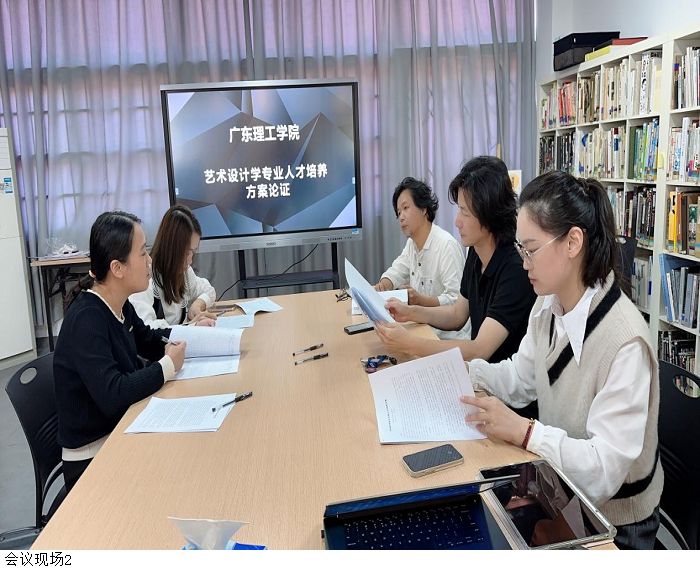 随后,参会人员对艺术设计学专业的人才培养方案展开了论证。廖向荣副教授在课程的设置上与当前岗位需要的专业技能进行结合,并指出原来课程设置不合理之处,提出了将艺术设计学专业的发展方向与人工智能结合的宝贵建议,并对该方向的课程设计给予详细的指导。广东省集美设计工程有限公司高级工艺美术师黄险峰先生结合企业经验,表示在文化传播中,短视频的制作技术需求激增,鼓励结合专业特色设置短视频制作的课程以适应时代的发展。